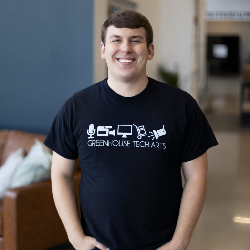 In his role as Production Director, Austin oversees all aspects of production tech, including lights, cameras, speakers, and screens, ensuring every detail is finely tuned for a seamless experience.